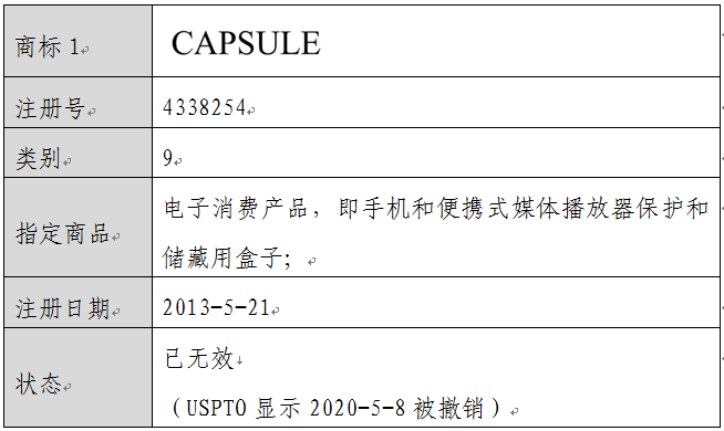 由于本案中涉及“capsule”商标的显著性问题,因此将美国专利商标局对以下商标的审查情况列举如下,仅供参考: