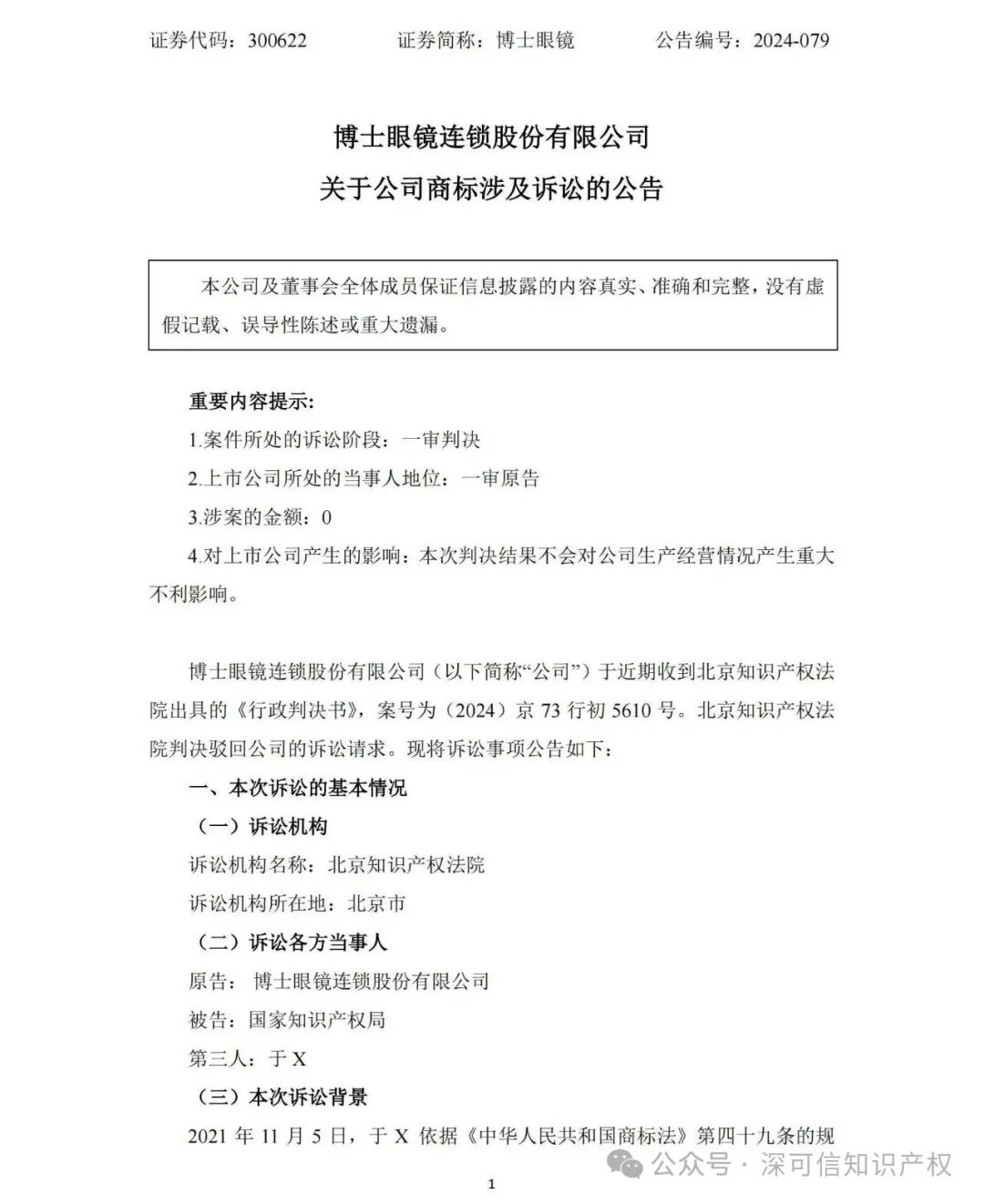 尽管博士眼镜在公告中表示,其仍持有图案一致、类别不同的其他商标,业务不会受到重大影响,但一个承载了近三十年品牌历史与市场认知的核心标识在法律上失效,无疑是品牌无形资产的一次重大折损。