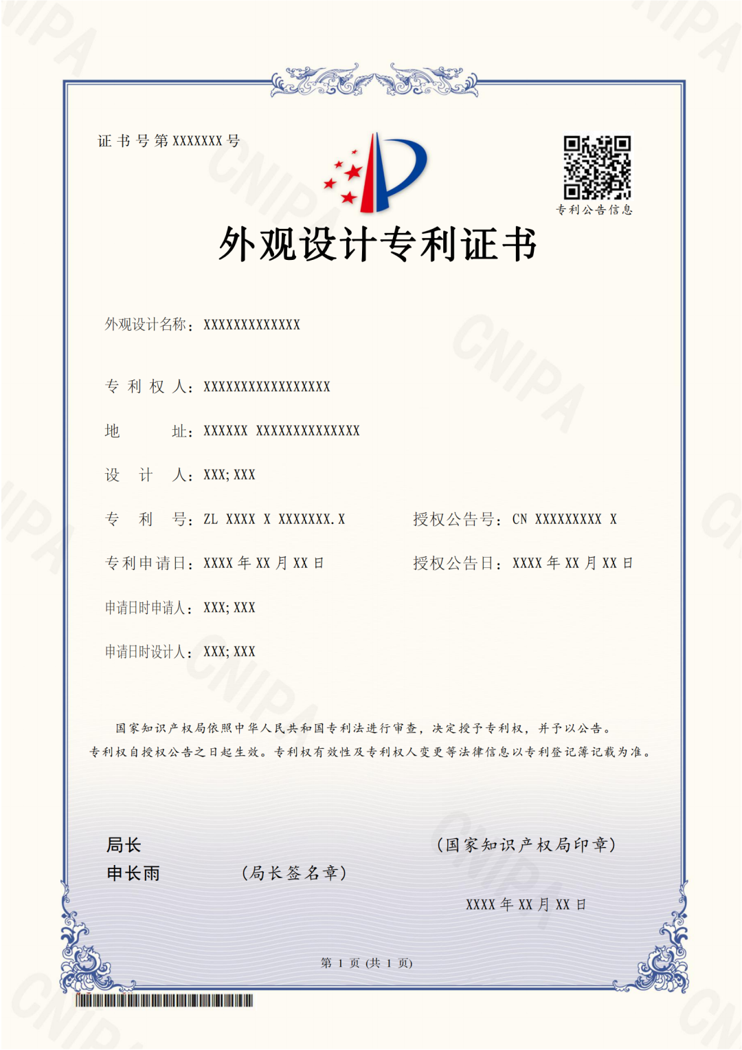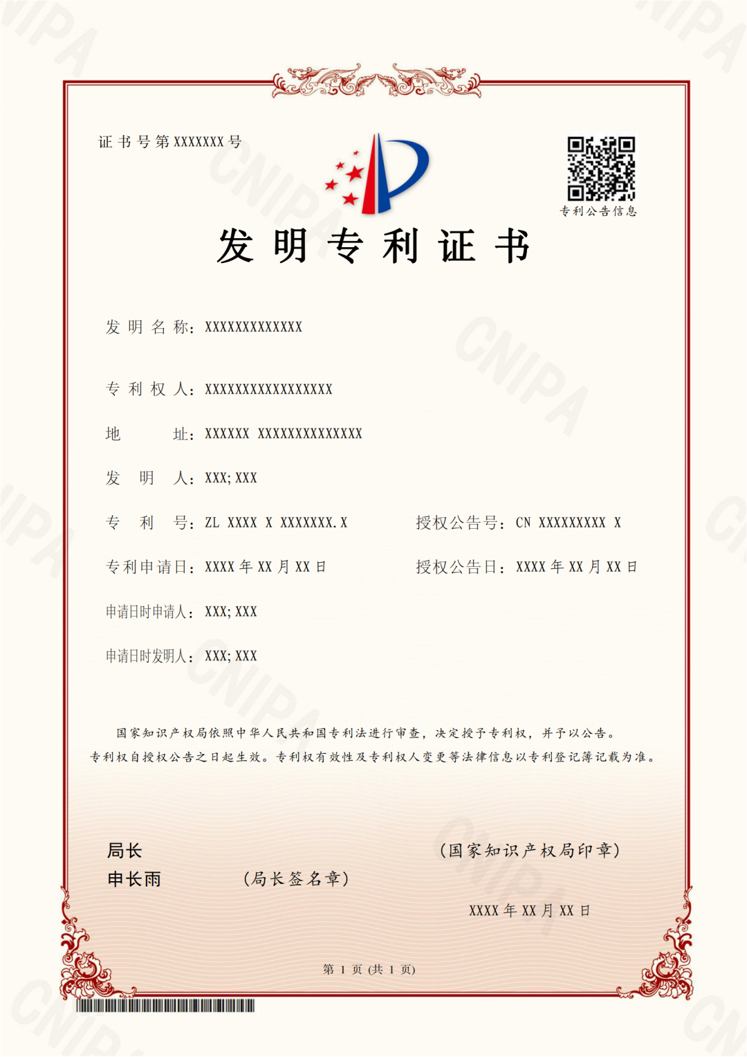 对于授权公告日在2024年6月1日之后(含当日)的专利,国家知识产权局颁发新版专利证书。新版专利证书沿用A4规格竖排版式,优化调整著录事项布局。