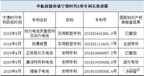 在去年7月宁德时代提起专利侵权诉讼后,中创新航随即向国家知识产权局提出申请,要求判令涉诉的五项宁德时代专利权无效。