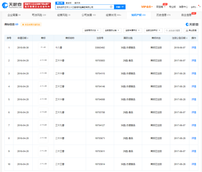 据天眼查App显示,“十四香”商标已被驻马店市王守义十三香调味品集团有限公司成功注册,其申请时间为2002年,国际分类为方便食品。截至目前,王守义公司已成功注册“十二香”至“十八香”商标,以及“二十三香”“二十六香”“三十六香”“三十九香”商标,国际分类多为方便食品、食品。王守义注册十四香究竟是怎么一回事,跟随深可信一起看看吧。