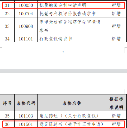近日,国家知识产权局网站发布👉《关于发布修订版专利申请请求类表格和电子申请数据标准规范的通知》,👈自2023年1月11日起启用!在修订和新增的表格中,新增了意见陈述书(关于非正常申请)和批量撤回专利申请声明。