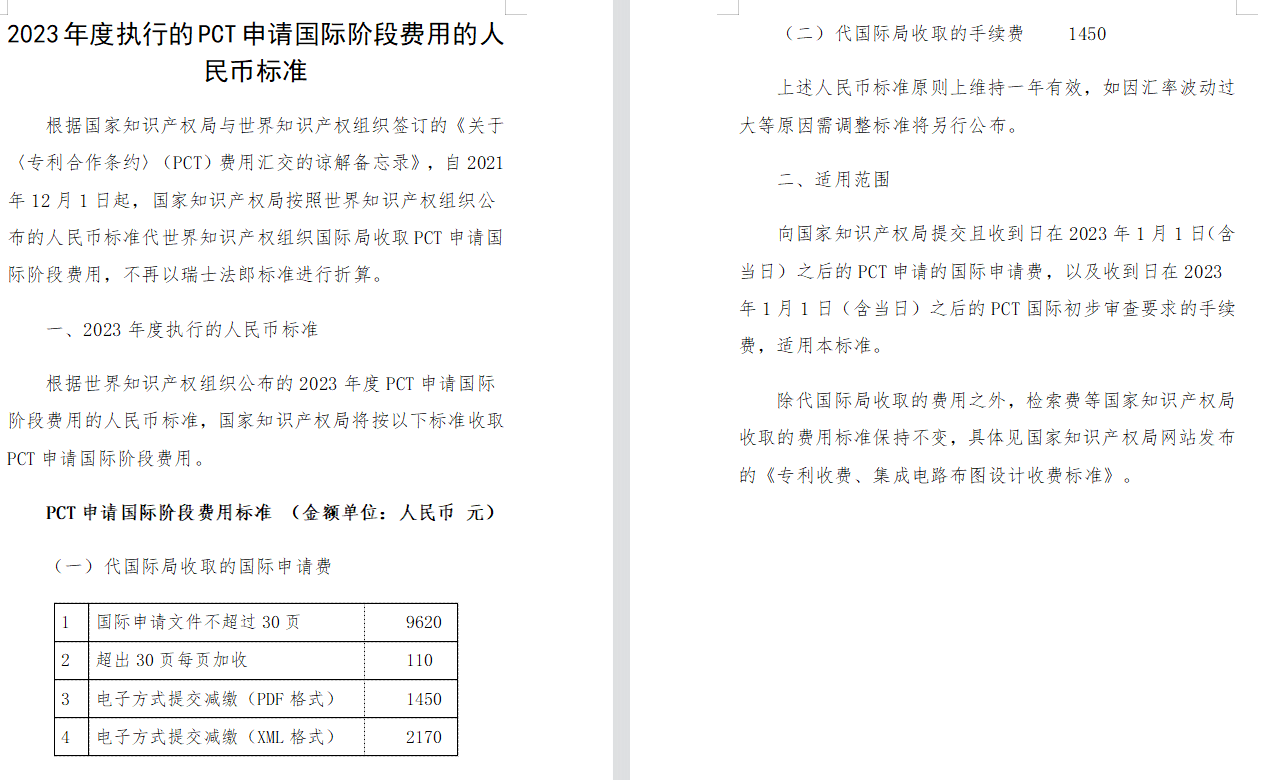 来了!2023年度执行的PCT申请国际阶段费用的人民币标准