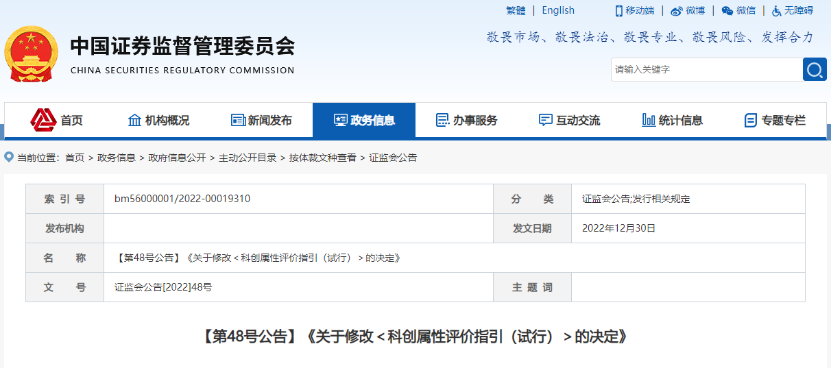 【第48号公告】《关于修改<科创属性评价指引(试行)>的决定》