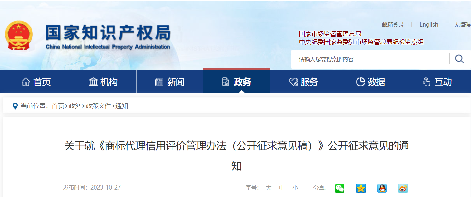 国知局:《商标代理信用评价管理办法(公开征求意见稿)》