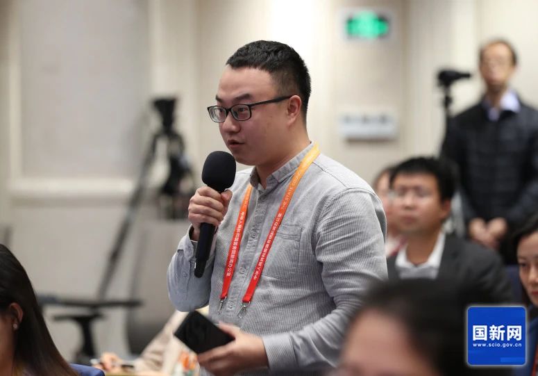 界面新闻记者提问(刘健 摄)