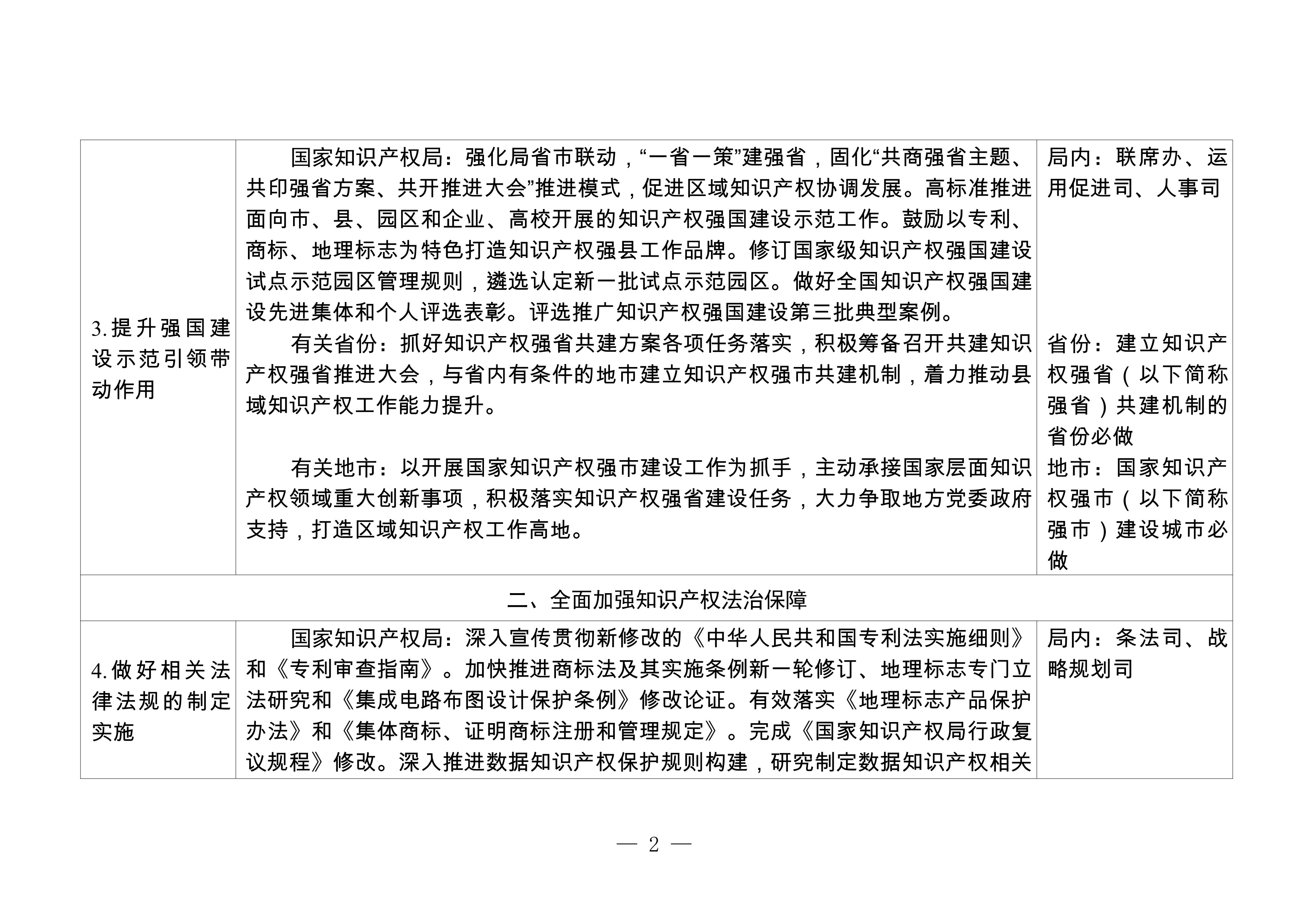 ——知识产权管理。知识产权强省强市建设深入推进,局省市协同联动工作机制持续优化。地方知识产权管理体制更加完善。知识产权领域中央与地方财政事权和支出责任划分改革工作稳步推进。