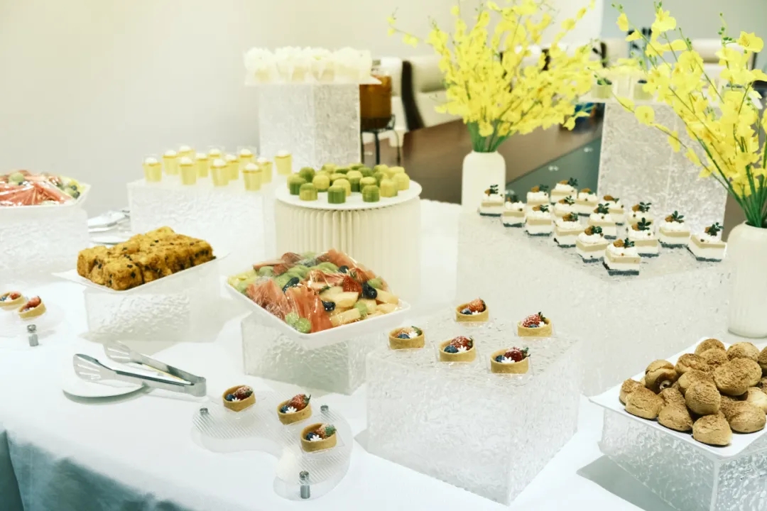 现场工作人员为各位到场来宾精心准备了美味的各式糕点