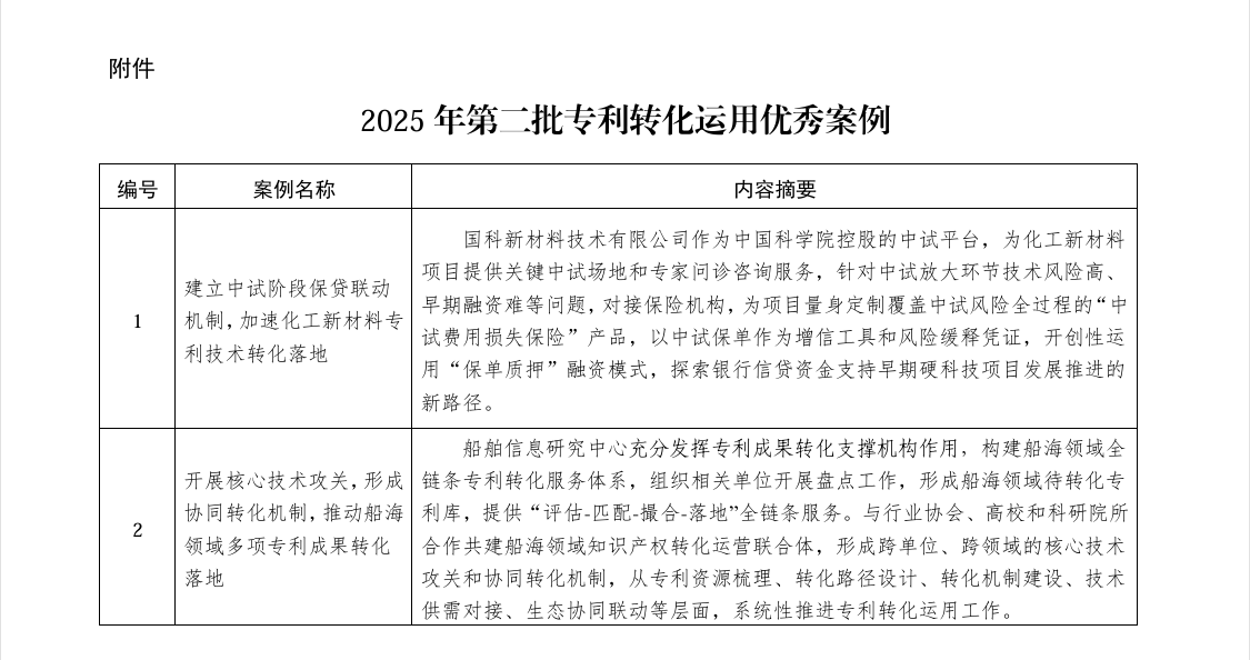 国家知识产权局办公室关于公布2025年第二批专利转化运用优秀案例的通知