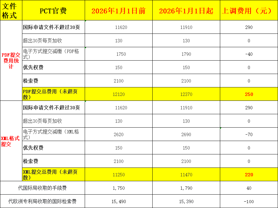 上涨!2026年1月1日起执行的PCT申请国际阶段费用的人民币标准